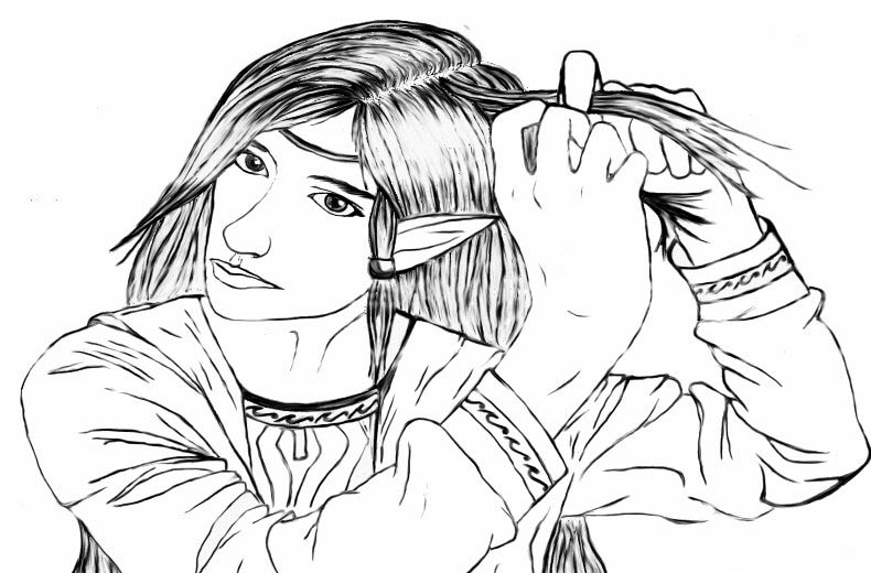 A cute little lineart by Irene of Prince Luke braiding his hair. :)