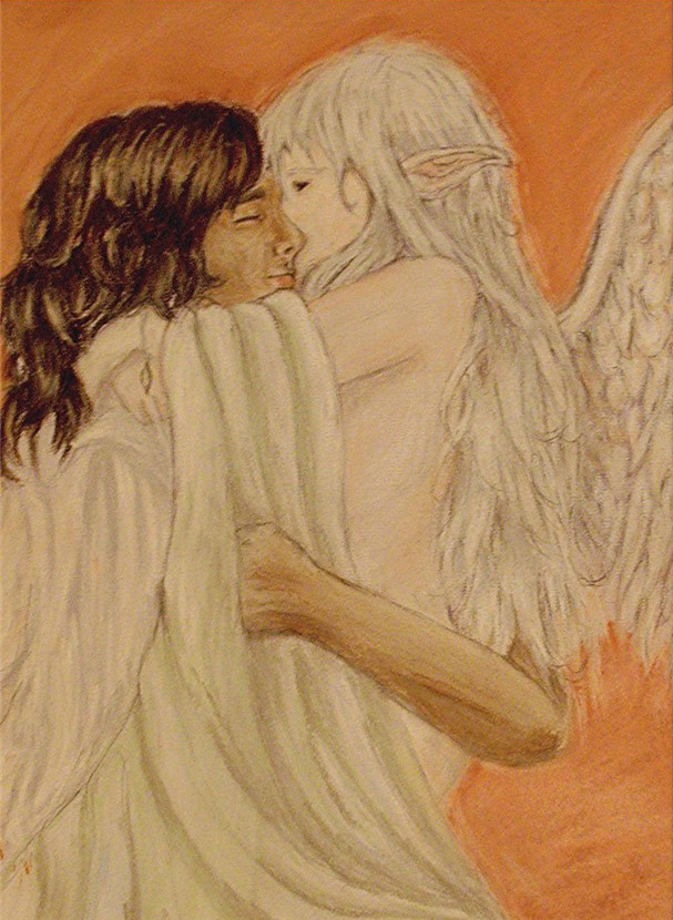 An adorable depiction of Kris and Sali in pastels by Corinne Dale! It’s nice to see Kris smiling. :)
